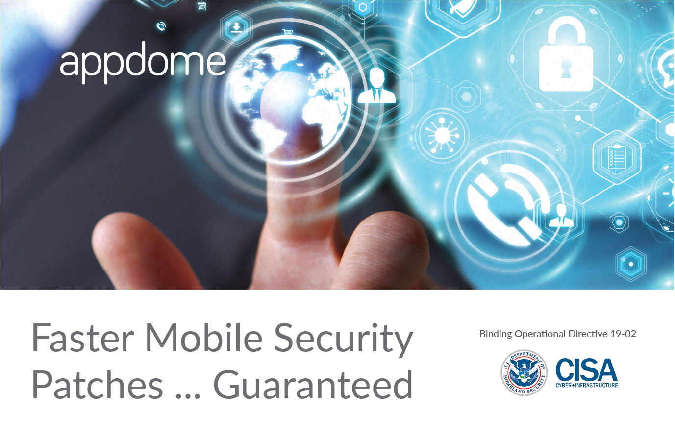 Appdome’s Mobile Security Suite already protects all Android and iOS apps from all vectors of attack. The Appdome engineering team adds protection against any newly identified security risk or vulnerability in its current release cadence. As a result, any department or agency can trust Appdome as its partner to comply with Binding Operational Directive 19-02 and deploy mobile security patches fast.