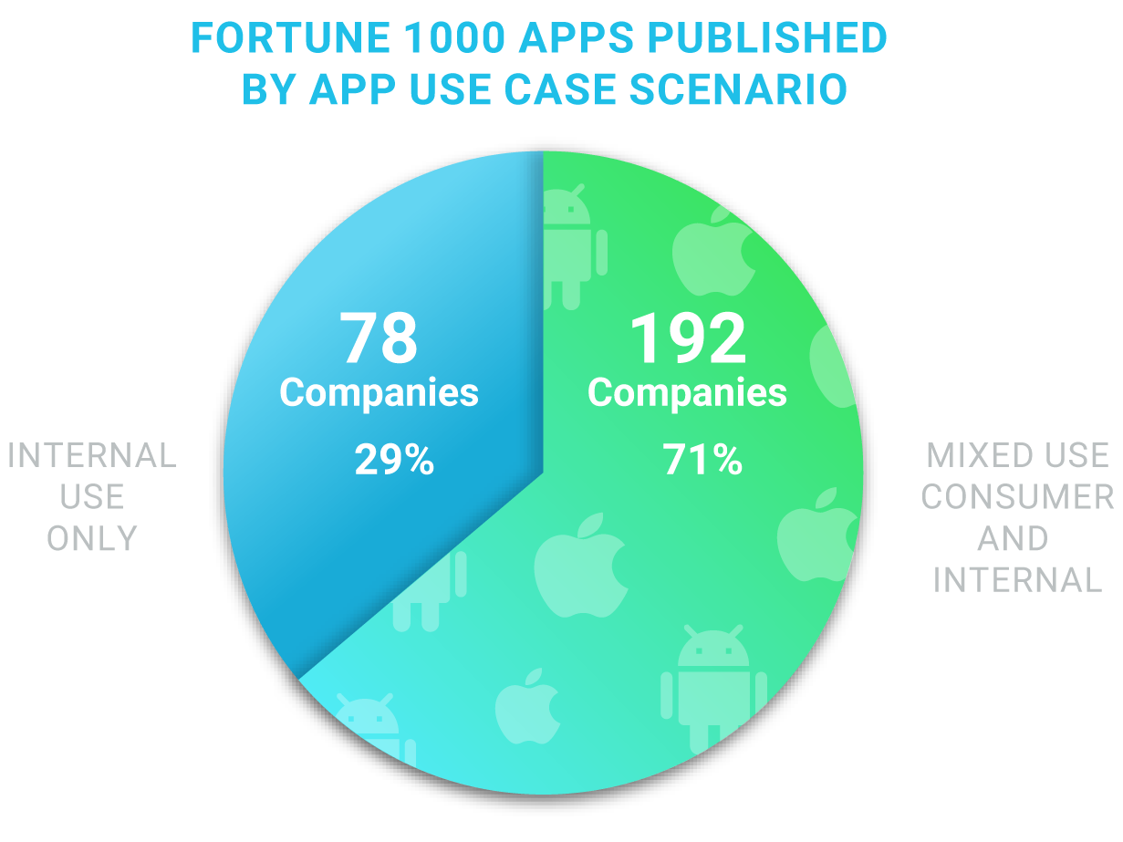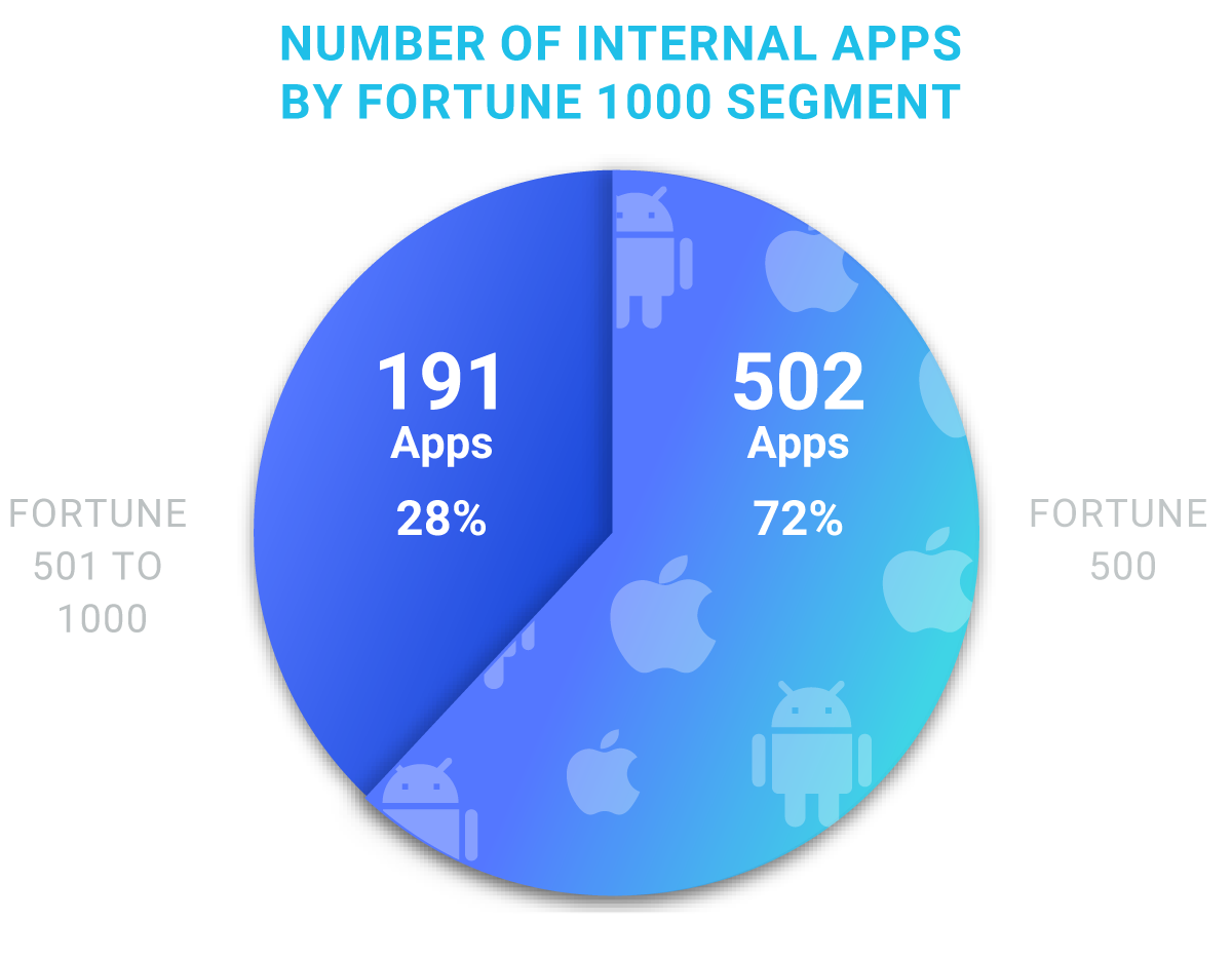Enterprise mobile development and innovation aimed at the workplace has increased significantly. A broad range and diversity of Android and iOS apps designed for internal work has emerged on the public app store. Below, we highlight the key findings from our research on the mobile apps published by the Fortune 1000 to the app store. Our goal is to help organizations design mobile strategies in 2020 and beyond.