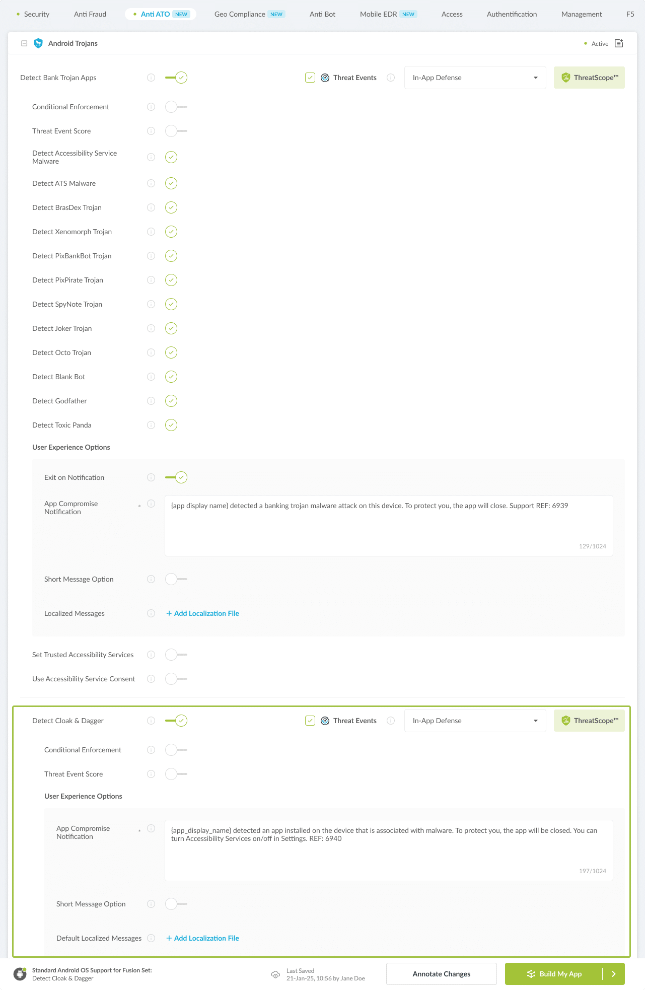 2. Follow the steps in Sections 2.2-2.2.2 of this article to add the Detect Cloak & Dagger feature to your Fusion Set via the Appdome Console.