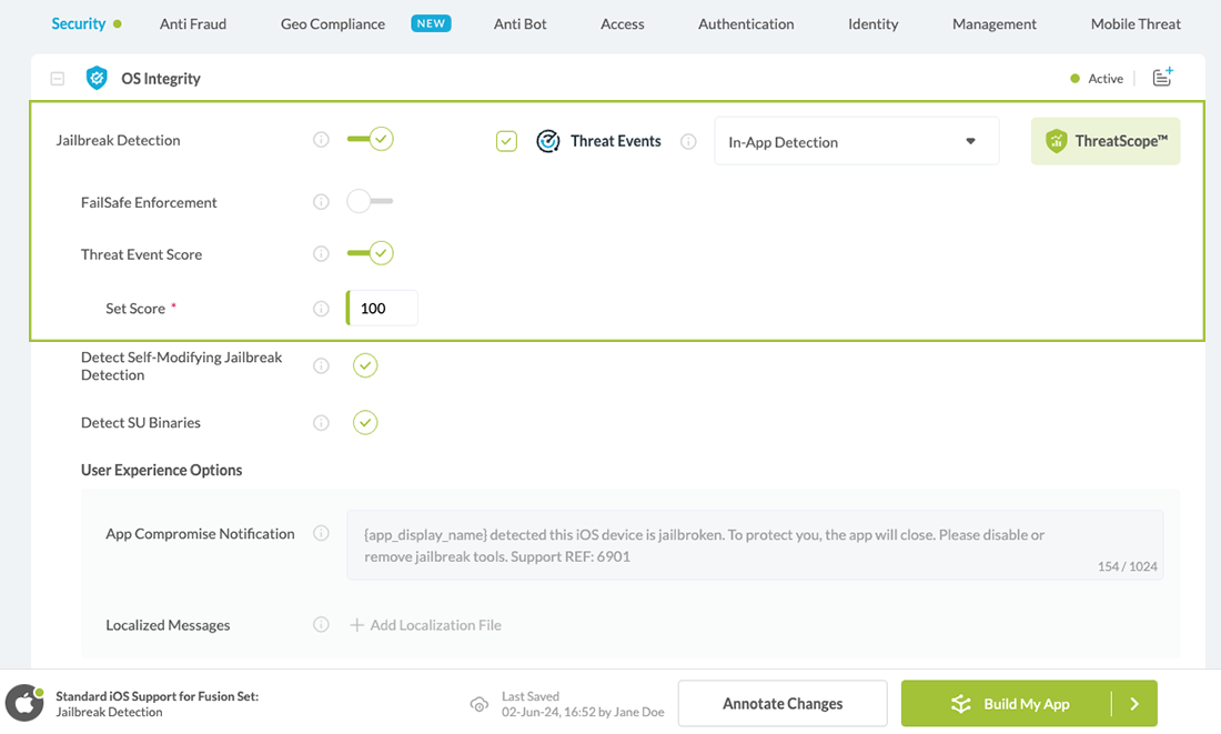 Threat Events enable iOS applications to adapt and respond to mobile app attacks and threats in real time, ensuring the safety of users, data, and transactions.