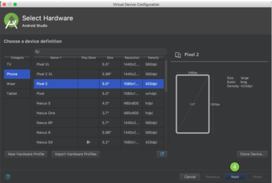 15. After selecting a device, click on debug .The virtual device will open automatically.