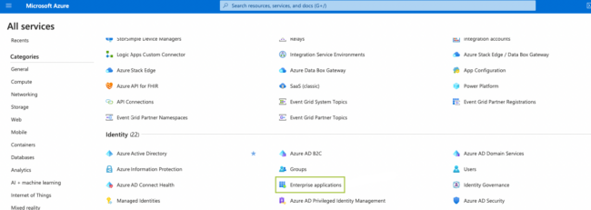 - Go to Microsoft Azure and navigate to the Enterprise Applications service.