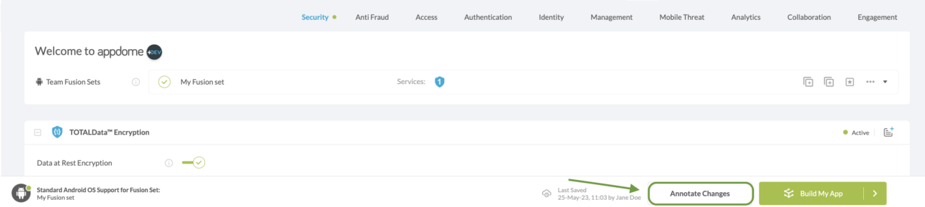 Each time you make a change in the Fusion Set, namely: enable or disable a protection, you need to add an annotation before you save the Fusion Set.