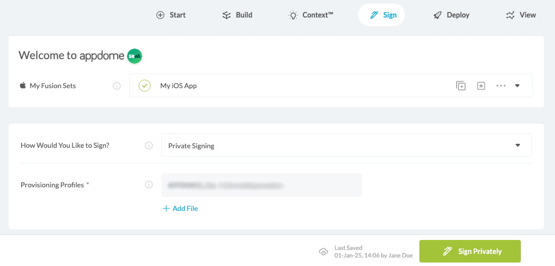 OneShield Protection: Every time you build an app on Appdome, the final package is sealed, signed, and protected automatically by ONEShield, Appdome’s app hardening (app shielding) technology. This protects the app from tampering, reverse engineering, or other methods of compromise. To ensure Anti-tampering protection while signing locally, Appdome still needs to seal the app using the provisioning profile. Hence, the private signing process requires the provisioning profile.