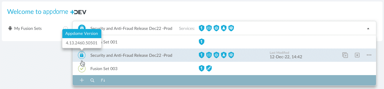 If Appdome Version is frozen, the Appdome Version number is displayed when hovering the Freeze icon.