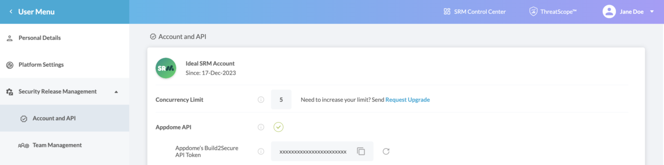 To view details about Appdome’s API Token - Go to Appdome settings > Account and API