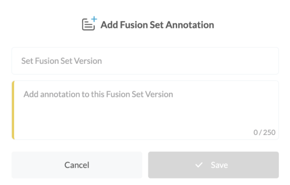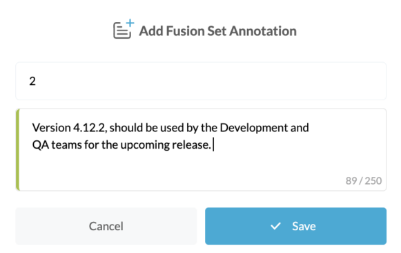 Below the annotation, you can see the date and time and the user who had updated the FS. For further details, see below the section Annotating a Fusion Set.