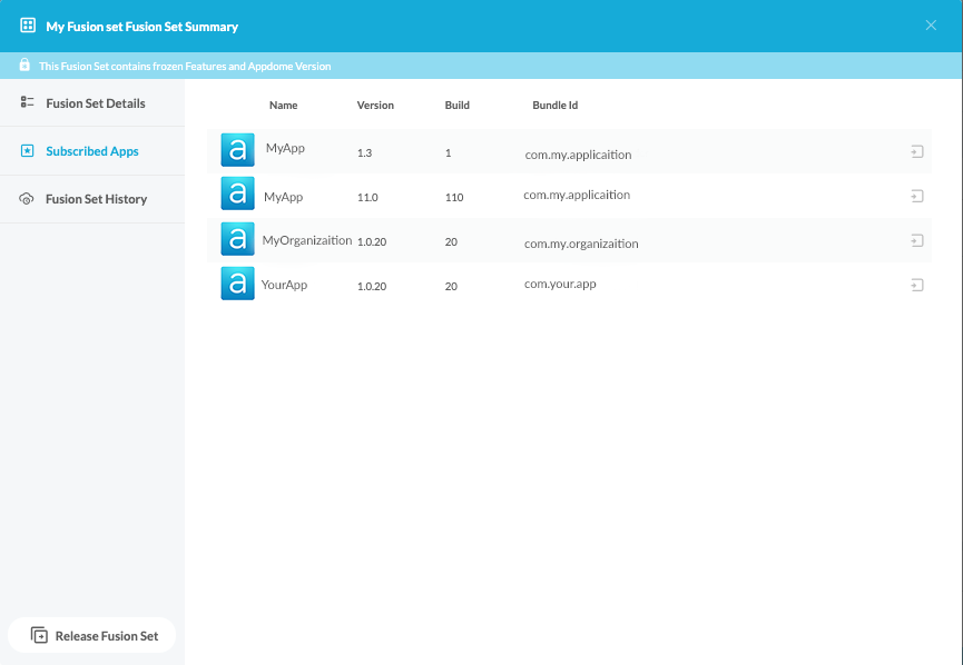 2. Subscribed Apps – Names and details of the apps subscribed to the selected Fusion Set.