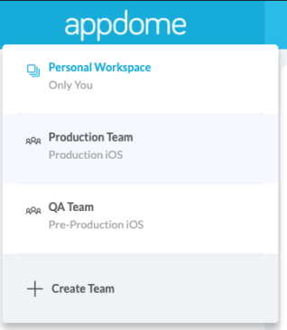 Click on the team that contains the built app that you want to share.