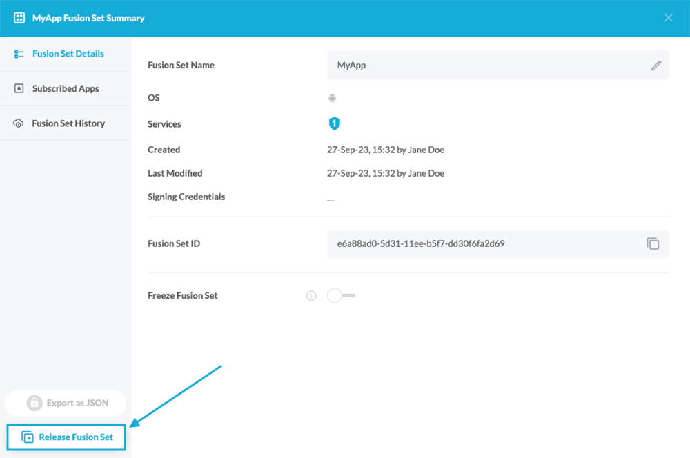 Follow these step-by-step instructions to Release a Fusion Set with another Appdome Team.