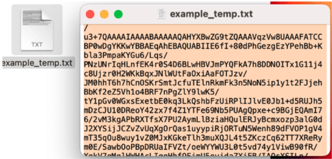 - Encode the requested file with base64, and save (paste) it in a temporary text file: