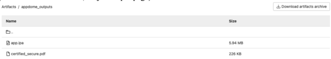 After completing this step, APPDOME_SECURED_APP will contain the path to your secured app, which you may use for the CI process.