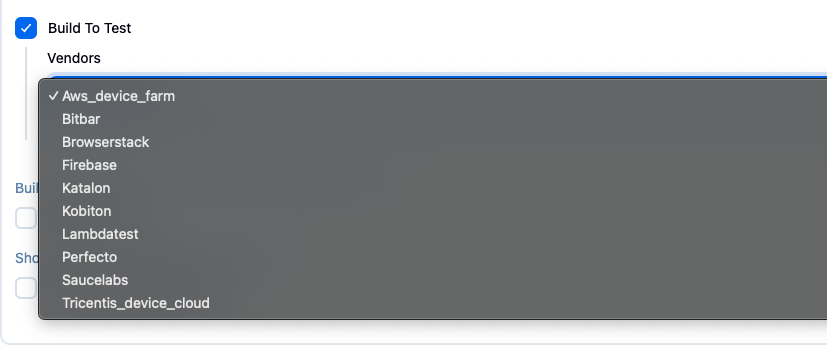 buildToTest: [selectedVendor: '<VENDOR_NAME>' ]