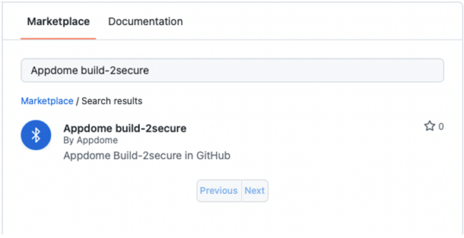 Marketplace tab - Search Appdome build-2secure