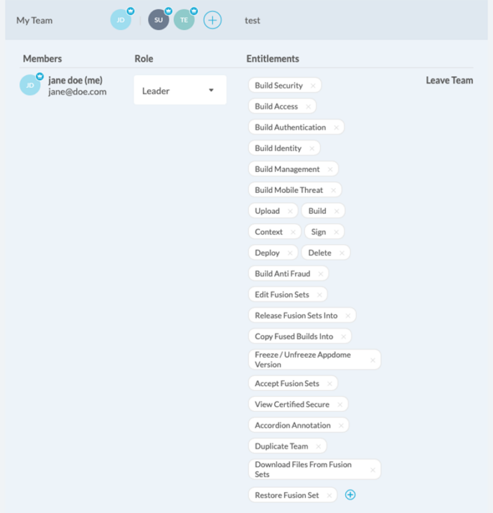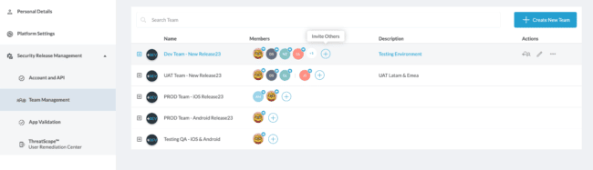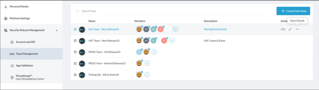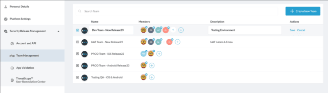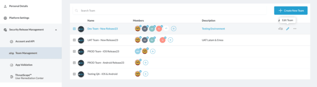 After creating a team, you can modify, edit, and manage it on Appdome, including: