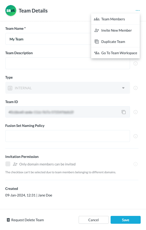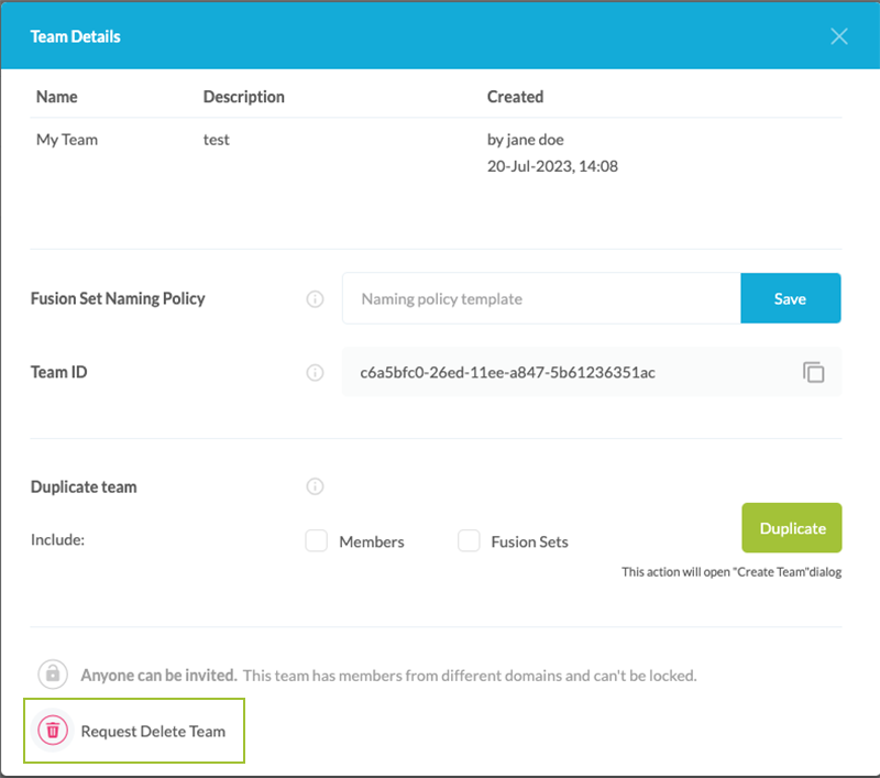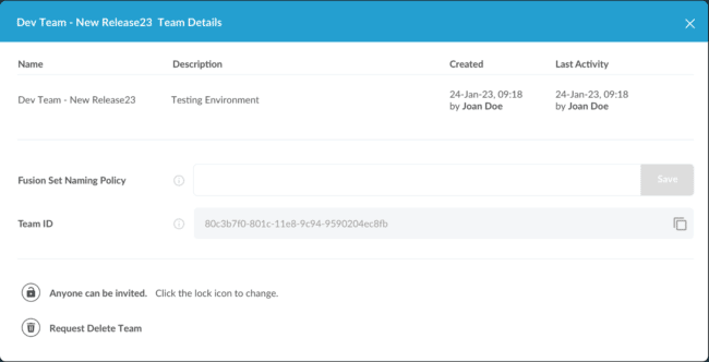 - View Team Type, Team ID, and Fusion Set Naming Policy.