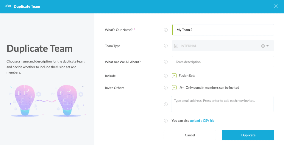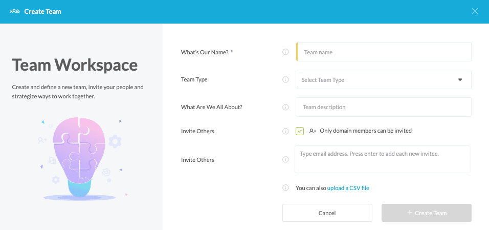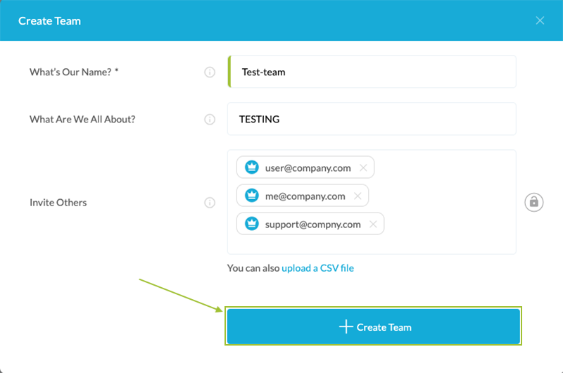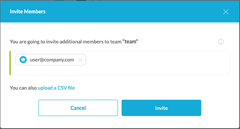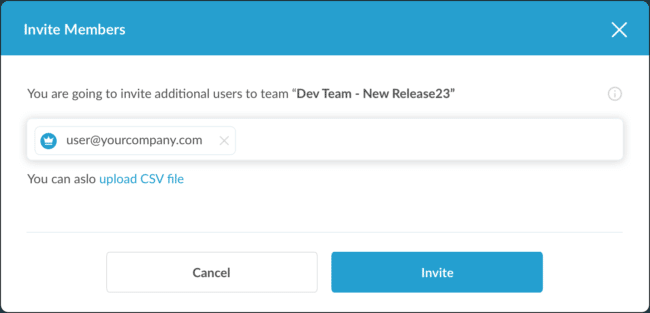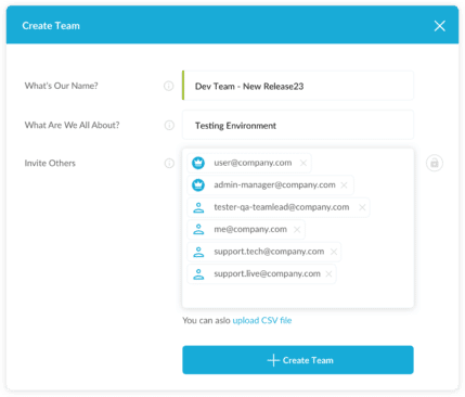 - You can upload a CSV file containing the names of team members and their entitlements, and roles.