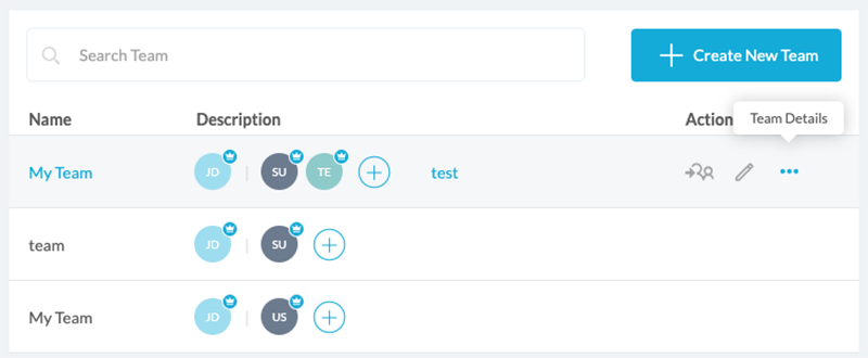 - Select a team from the list and click … next to the relevant team’s name, then select the relevant option from the dropdown menu.