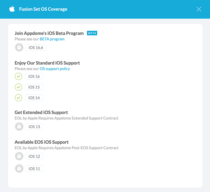 - Appdome Support and EOL Policies for Mobile OSs and SDKs
