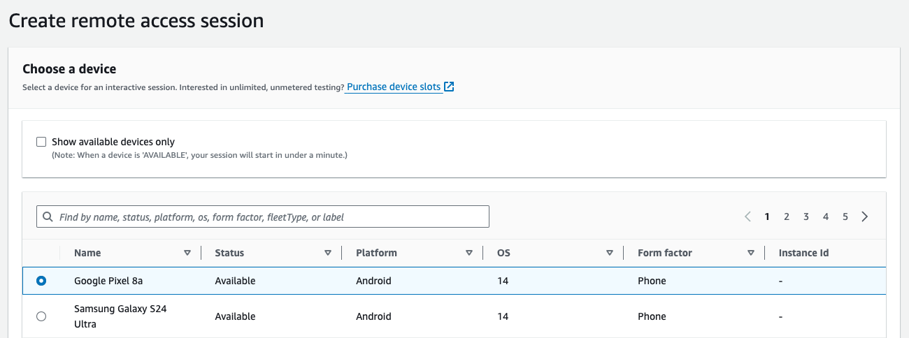 - Search for “Device Farm.”