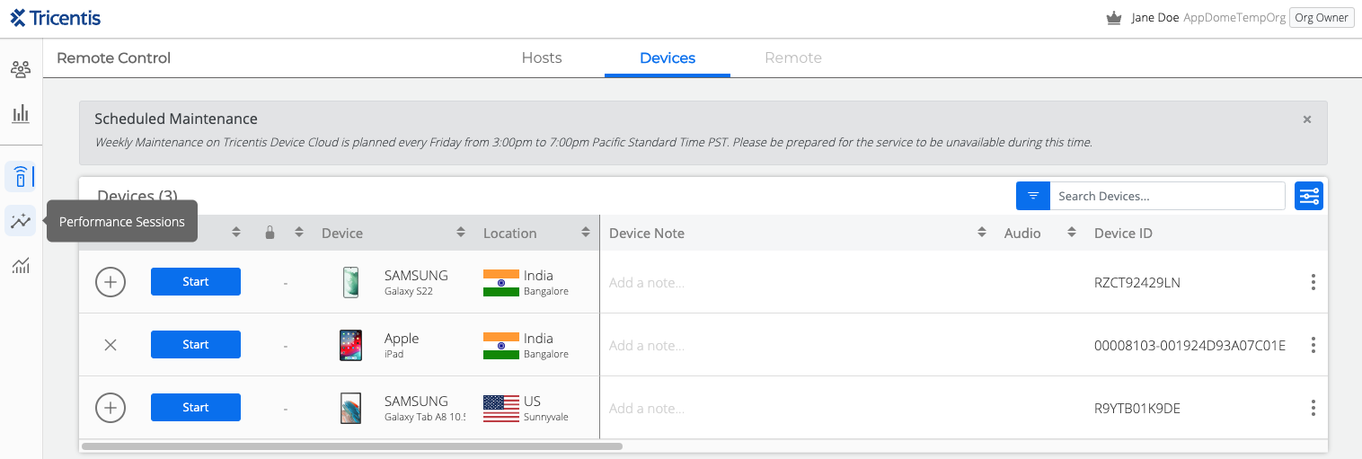 - Navigate to the Performance Session button on the left-side menu.