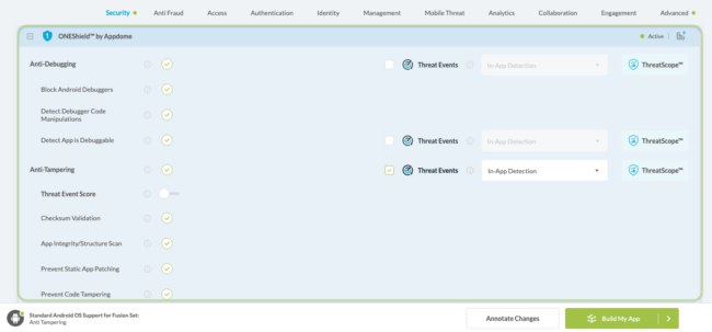 Customers with an Appdome SRM license can use Appdome’s Build2Test service to quickly and easily test their Appdome-secured mobile apps using Google Firebase, without the need for different Fusion Sets. With Appdome’s Build2Test service, Appdome’s in-app defense model recognizes the unique signature of these testing services and allows for easy testing without issuing a security alert or forcing the app to exit, even if these services use tools such as Magisk or Frida.