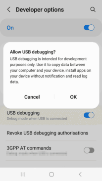 - Click OK. If you do not see the message appear on your mobile device, disconnect and reconnect the USB cable.