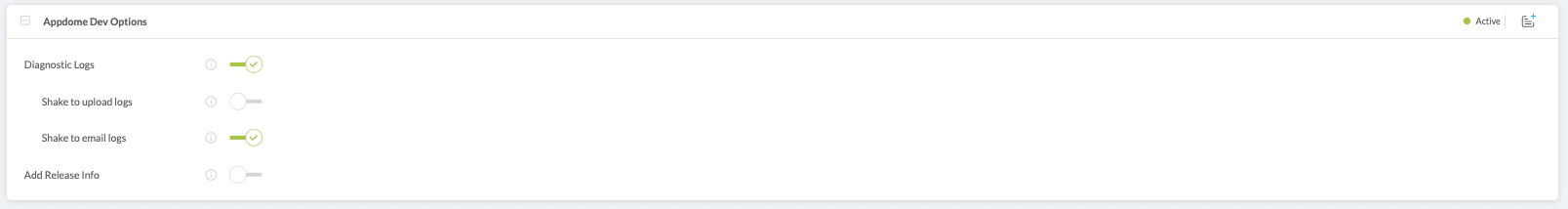 - Check with Appdome support to see if your account can enable Diagnostic Logs on app builds.