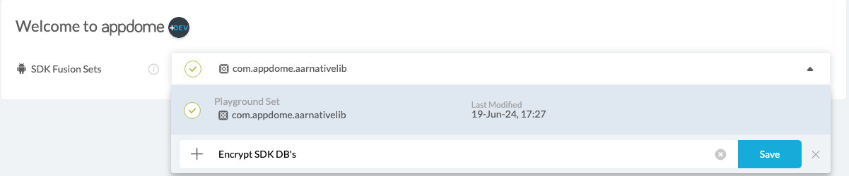Note: Naming the Fusion Set to correspond to the protection(s) selected is for illustration purposes only (not required). - Follow the steps in the section Building the Encrypt SDK DB’s feature via Appdome Console of this article to add the Encrypt SDK DB’s feature to this Fusion Set