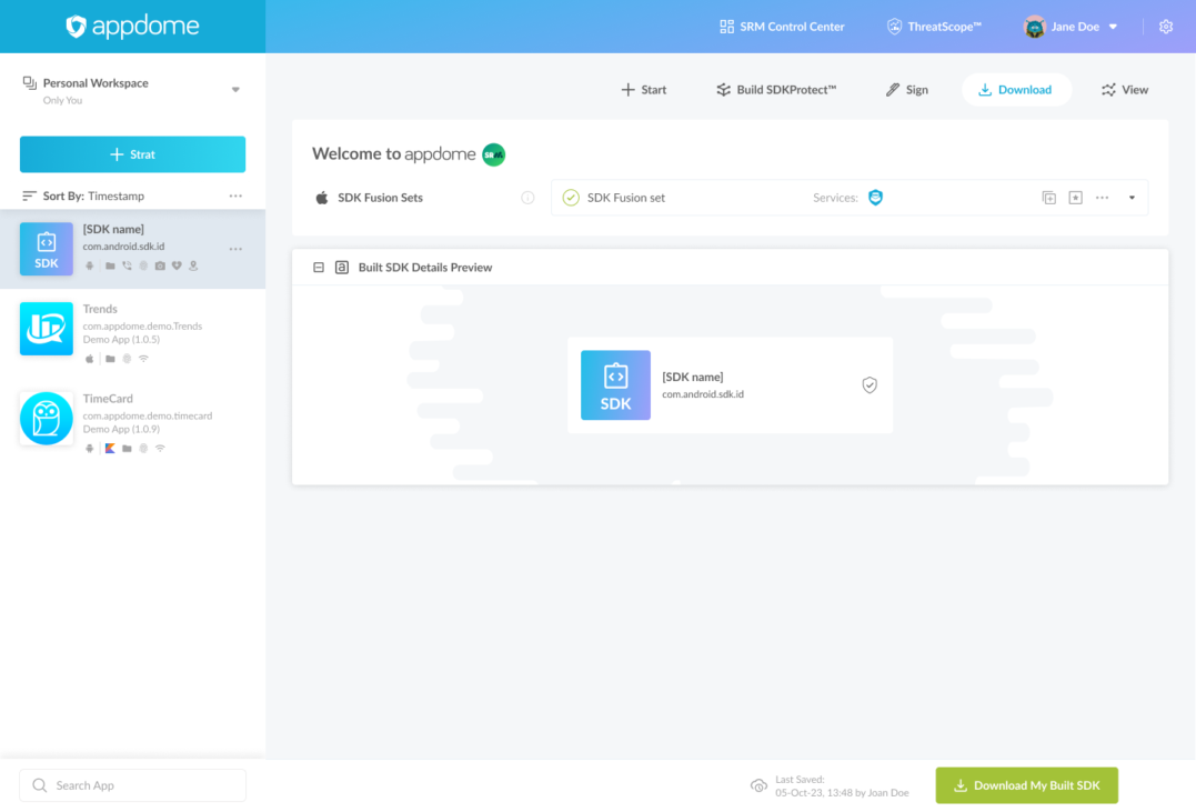 - After building and signing, click on “Download” to retrieve the signed SDK.