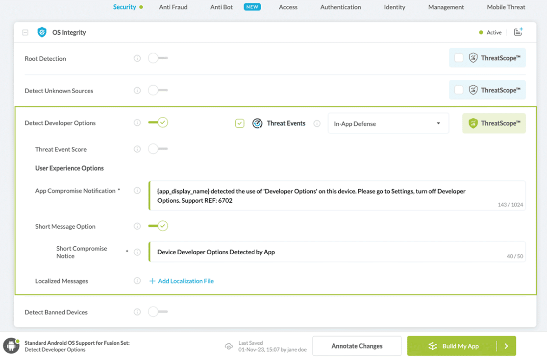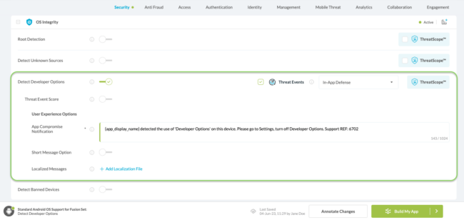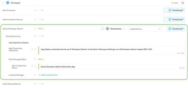 Learn how to customize the App compromise Notification that will display to a mobile user if Appdome detects that the Android Developer Options setting is enabled.