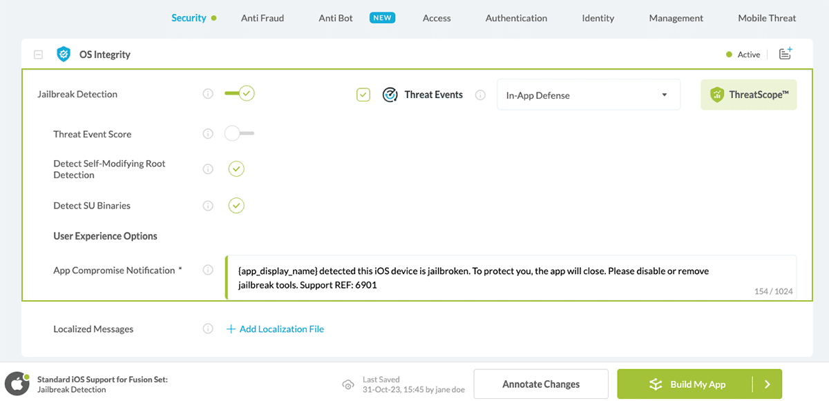 Configure the User Experience Options for Jailbreak Detection: