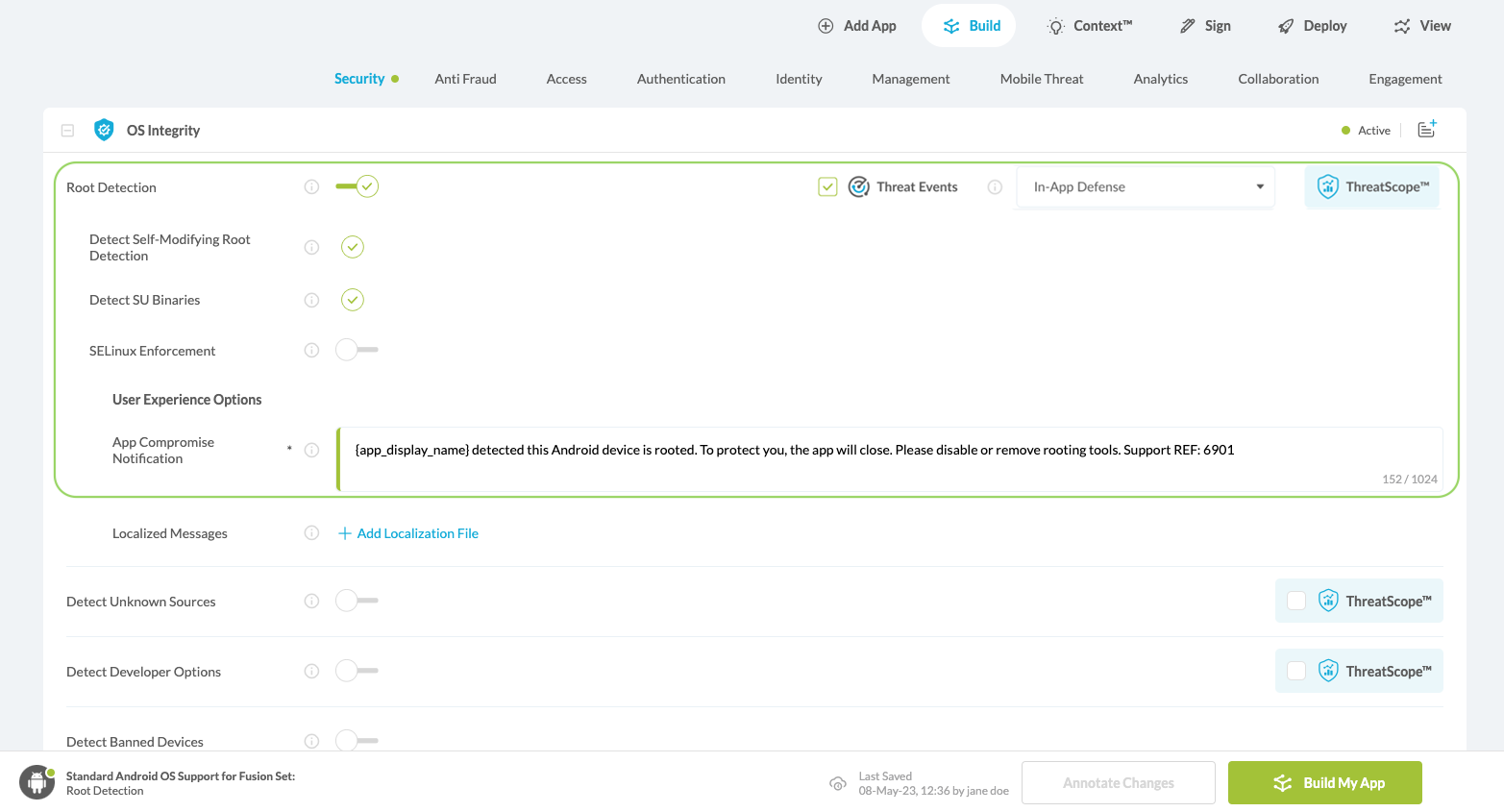 2. Follow the steps in Sections 2.2-2.2.2 of this article to add the Root Detection feature to your Fusion Set via the Appdome Console.