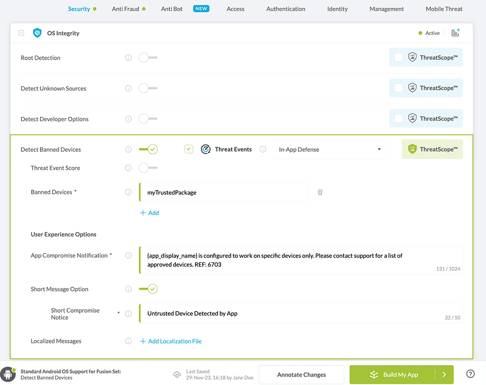 This Knowledge Base article provides instructions on how to customize the App Compromise notification when Appdome detects the mobile application is running on a Banned Device.