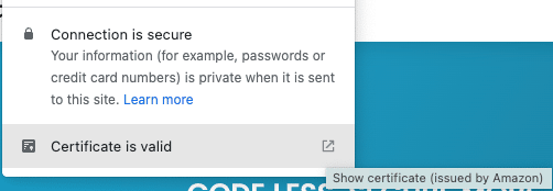 - Click on the Show certificate (arrow) icon on the right of the row Certificate is valid.