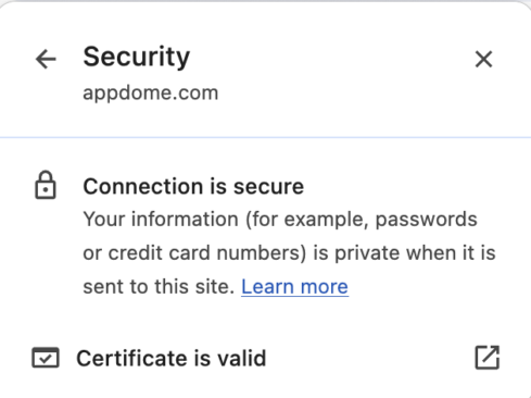 - Use Chrome browser to open the required website; for example, https://appdome.com: