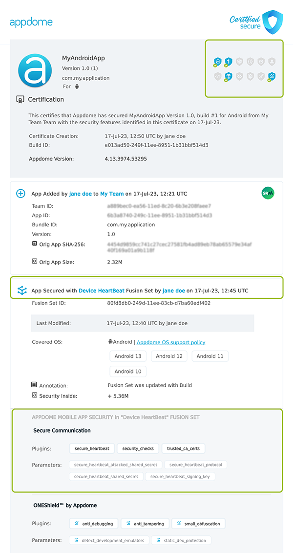 Payload Generation: Threat-EKG sends payloads containing critical information about the wearable or mobile device’s status, including risk session status, safe session status, payload timestamp, nonce, Appdome Signed Payload, Appdome ThreatID™, and Appdome AppID™.