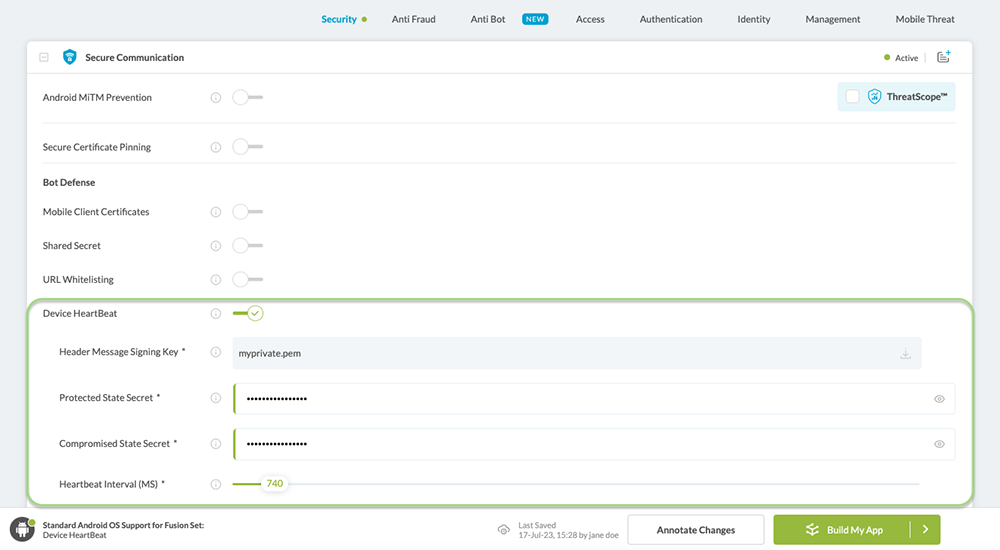 Threat Events: Threat-EKG facilitates communication to the server through Threat-Events sent from Appdome to the mobile app, updating the mobile or wearable device health status and alerting the mobile app to potential threats.