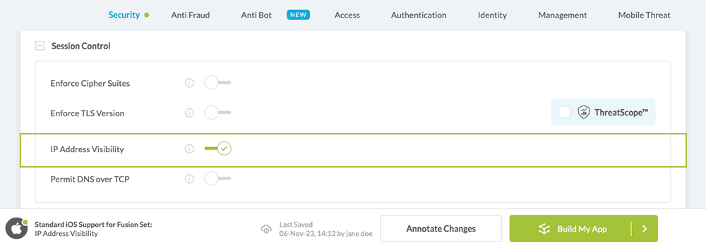 2. Follow the steps in Sections 2.2-2.2.2 of this article to add the IP Address Visibility feature to your Fusion Set via the Appdome Console.