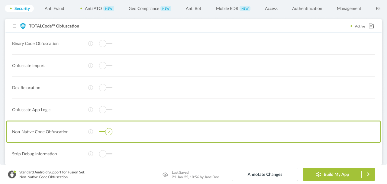 Figure 2: Fusion Set that displays the newly added Non-Native Code Obfuscation protection