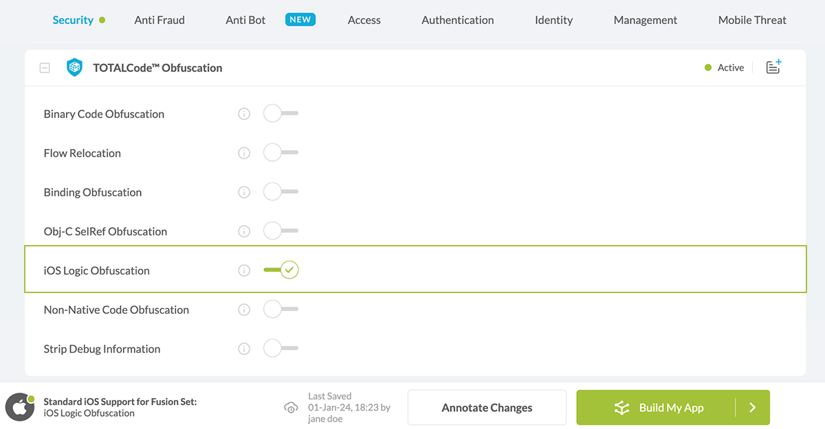 Figure 2: Fusion Set that displays the newly added iOS Logic Obfuscation protection