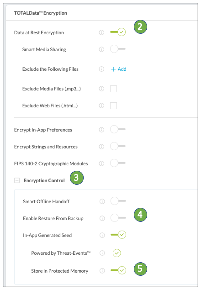 Navigate to Build > Security tab > TOTALData™ Encryption section in the Appdome Console.