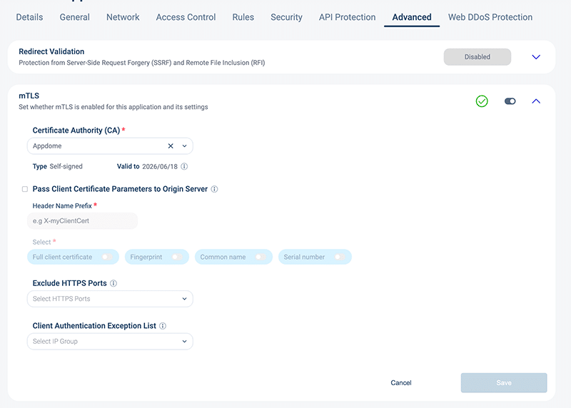 - Turn on the mTLS toggle