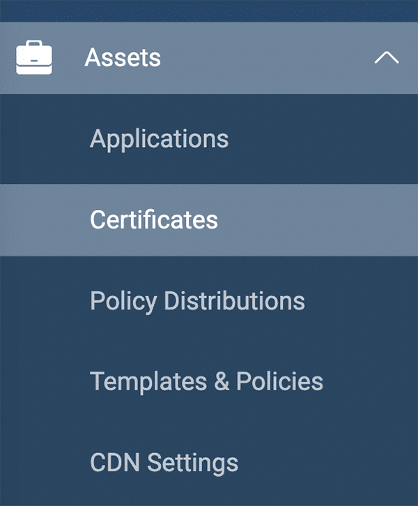 - In the Radware portal, navigate to Assets > Certificates.