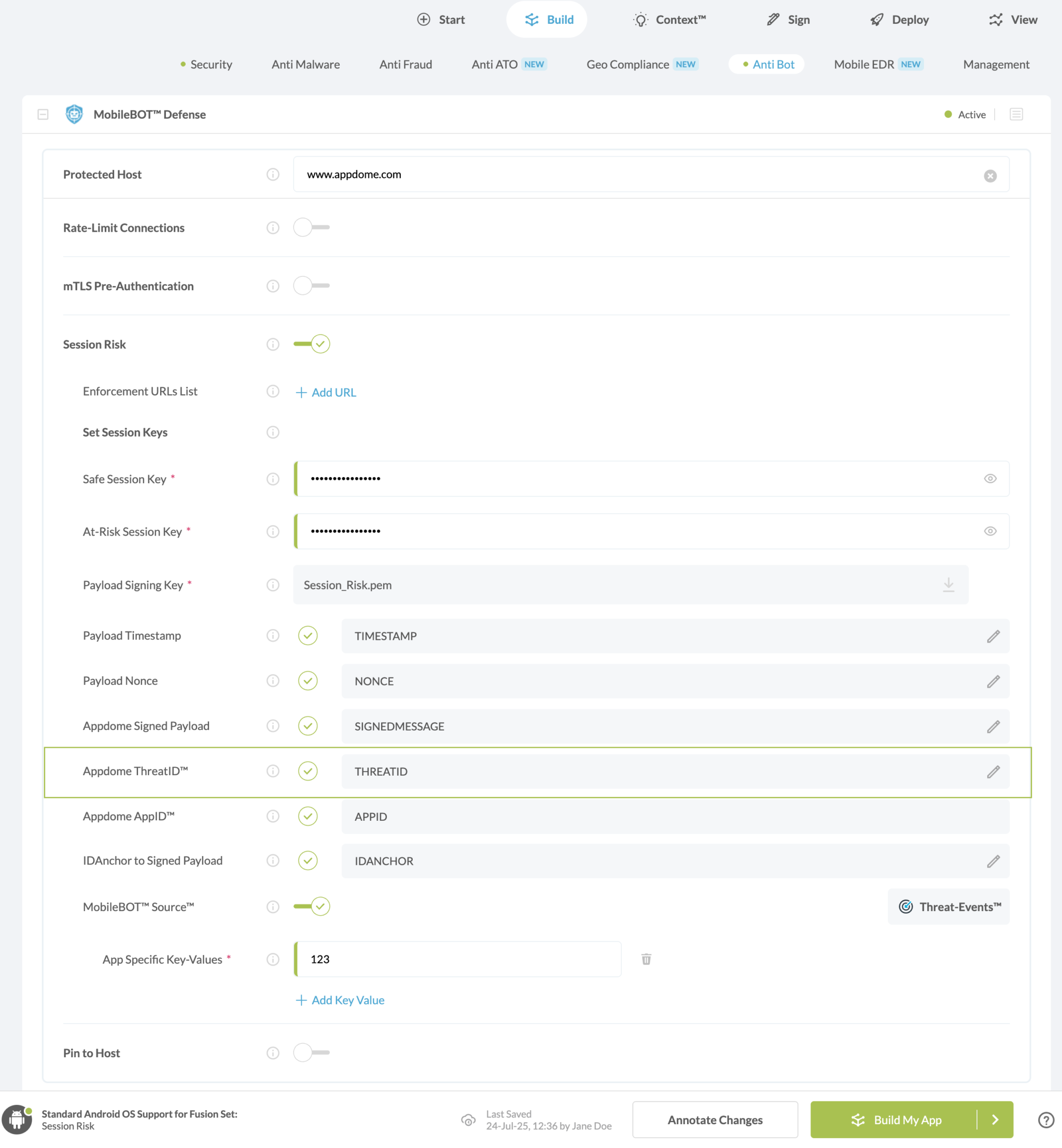 Follow the steps in Sections 2.2-2.2.2 of this article to add the Appdome ThreatID™ feature to your Fusion Set via the Appdome Console.