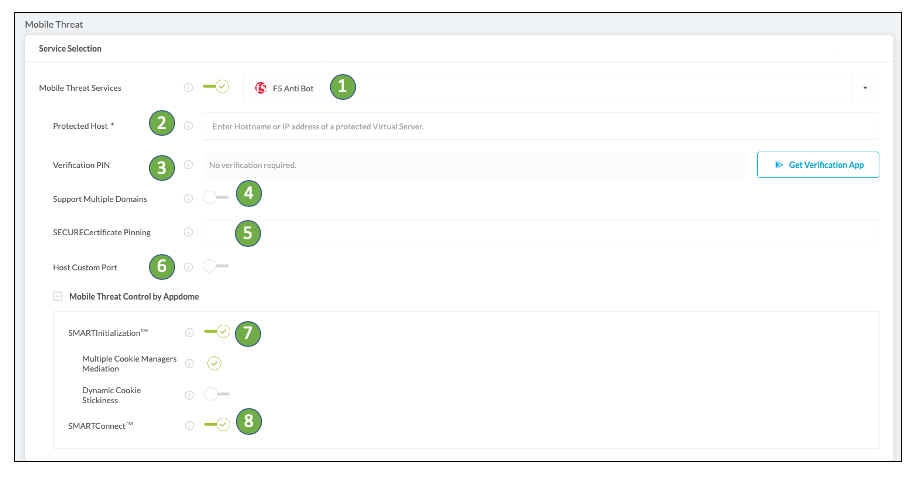 5. SECUREcertificate pining – if certificate pinning is needed in your configuration, supply your F5 certificate Hash generated in the F5 Anti-Bot SDK Process.