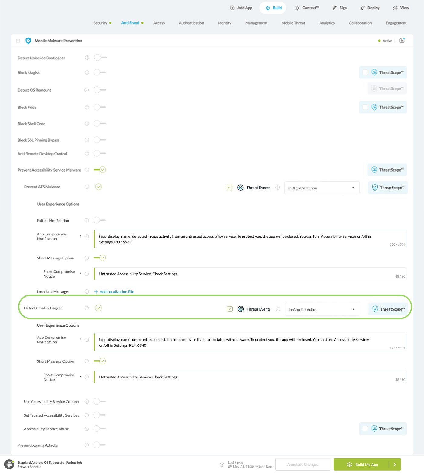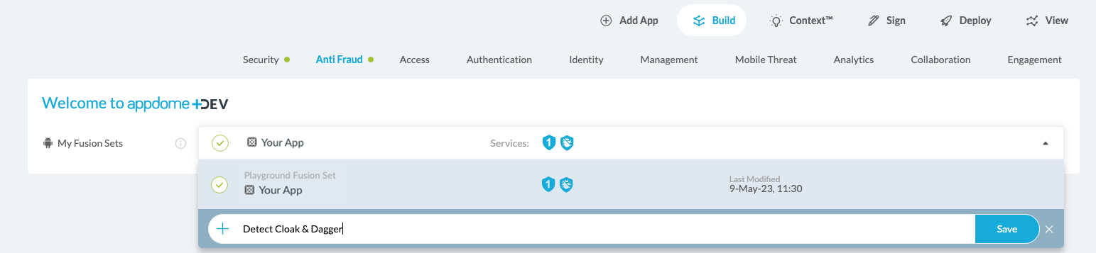 Follow the steps in Sections 2.2-2.2.2 of this article to add the Detect Cloak & Dagger feature to your Fusion Set via the Appdome Console.