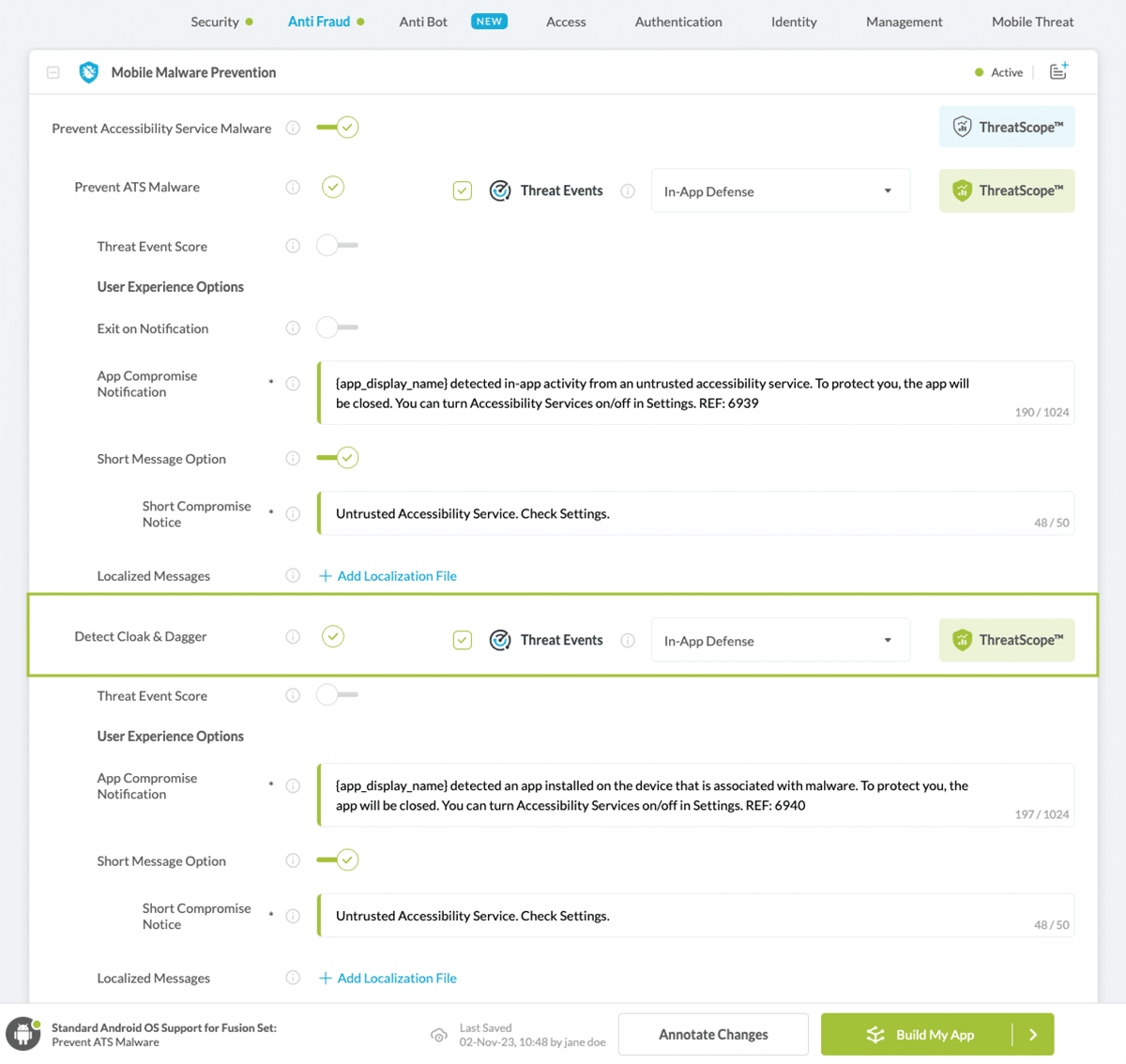 Toggle On Detect Banking Trojan Apps > Detect Cloak & Dagger.
