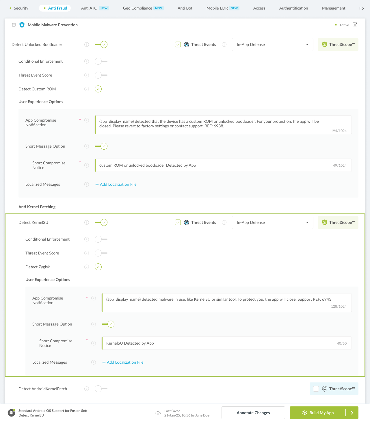 Figure 2: Fusion Set that displays the newly added Detect KernelSU protection