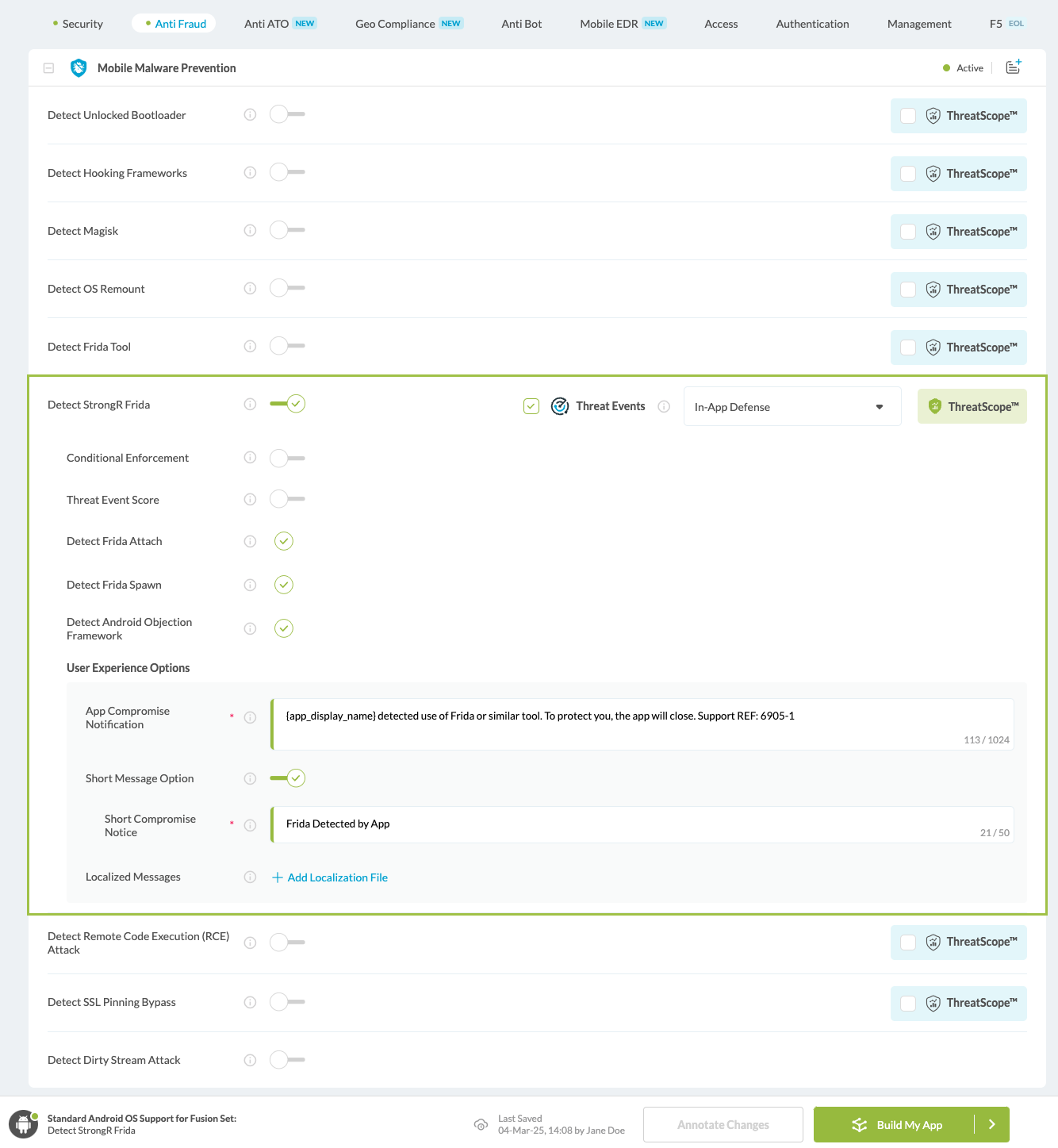 Figure 2: Fusion Set that displays the newly added Detect StrongR Frida protection